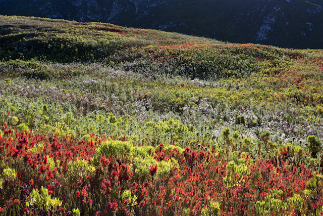 The Cape FloraThe southwestern tip of the African continent is the natural home of a unique and beautiful collection of plants known as the Cape Flora. Here, in only 74000 square kilometers can be found over 9000 plant species of which some 70% grow naturally nowhere else in the world. Most of these plants grow in fynbos, a term that describes a vegetation characterised by Cape reeds (Restionaceae), members of the Protea Family (Proteaceae), heaths (Ericaceae) and a startling variety of bulbs. Many of the Cape’s flowers are especially lovely which is why some of them (the proteas, watsonias, freesias, sparaxis, ice flowers, crane flower and many more) are familiar to gardeners all over the world.